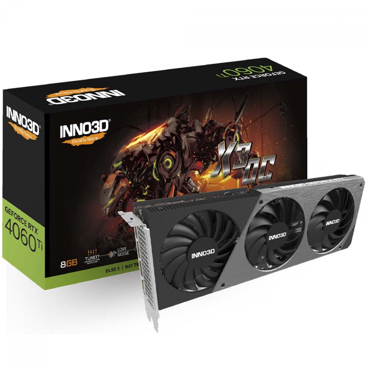 Placa de Vídeo INNO3D NVIDIA GeForce RTX 4060 Ti X3 OC, 8GB, GDDR6, DLSS, Ray Tracing, N406T3-08D6X-171153L
